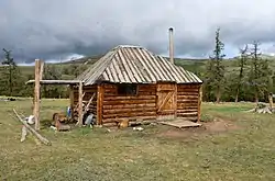 Изменения в области хозяйства, произошедшие к началу XX в., отразились на характере поселений и жилищ. Все большее распространение получали бревенчатые постройки. Появляются жилища, подобные русской избе с полом, окнами и печью. У местных богачей появились даже срубные двухэтажные дома, крытые железом. Зажиточные скотовладельцы начали возводить подсобные хозяйственные постройки и помещения для содержания скота. Иногда их объединяли с жилыми постройками, таким образом создавалась незнакомая прежде алтайцам усадьба.[25]