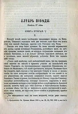 - Полное собрание сочинений и переводов. — СПб. : Сирин, 1913. — Т. XII: Алтарь победы : Повесть IV века. (Кн. 1 и 2). — VIII, 284 с.