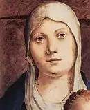От картины остались только три фрагмента центральной части, которые сейчас соединены вместе. На картине изображена сцена «Святое Собеседование»: в центре Мадонна с младенцем, слева — святые Николай и Анастасия, а справа — святые Доминик и Урсула.