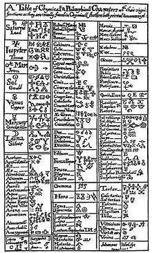 Алхими́ческие си́мволы, первоначально разработанные в рамках протонауки алхимии, использовались для обозначения некоторых химических элементов и соединений вплоть до XVIII века. Начертание символов было в большой степени стандартизировано, однако и сами символы, и стиль их начертания у разных алхимиков могли отличаться. Здесь приведены наиболее общие символы и начертания.