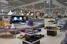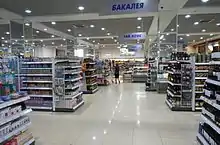 ![]() Стилобат жилых башен-близнецов на Авиационной, где располагались один из универсамов и головной офис сети | |