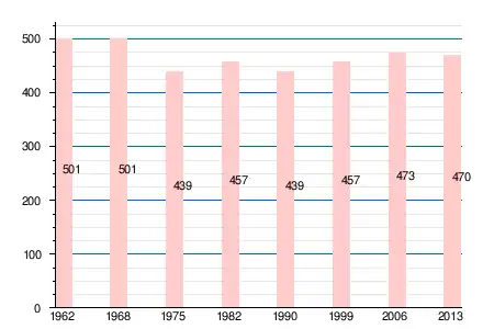 | 1962 | 1968 | 1975 | 1982 | 1990 | 1999 | 2006 | 2008 | 2011 | 2012 | 2013 |