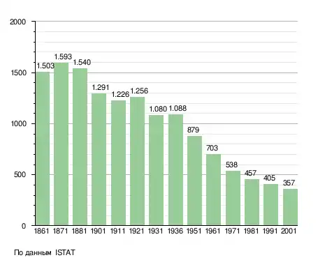 Население составляет 332 человека (2008 г.), плотность населения составляет 16 чел./км². Занимает площадь 21 км². Почтовый индекс — 15060. Телефонный код — 0143.
