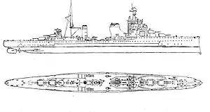 Заказ на строительство крейсера поступил в 1928 году. Закладка на стапеле состоялась 16 апреля 1928, спуск на воду прошёл 23 августа 1930. Крейсер был оснащён бронёй толщиной от 20 до 40 мм, оснащён восемью 152-мм орудиями, шестью 100-мм орудиями и 16 пулемётами. Развивал скорость до 37 узлов при помощности в шесть котлов и две турбин в 95 тысяч л. с.