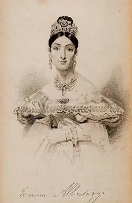 Эмма Альбертацци выступала на различных итальянских сценах в 1840-х годах. В октябре 1846 года она пела на мировой премьере оперы Эдварда Лодера «Уиллис» или «Ночные танцоры».