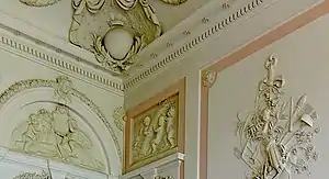 По поручению курфюрста Карла Теодора главный строитель Иоганн Йозеф Кувен получил заказ на реконструкцию ветхого дворца Йегерхоф в Дюссельдорфе-Пемпельфорте . Мастер-строитель Пигаж также принимал участие в работе, которая продолжалась до 1762 года, а Джузеппе Антонио Альбуччо был ответственным за украшение лепных потолков. [6]