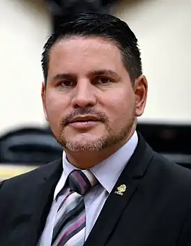 ![]() Фабрисио Альварадо в зале заседаний Законодательного собрания Коста-Рики (2017 год). | |