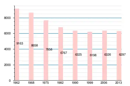 Численность населения коммуны в 2008 году составляла 6360 человек[6], в 2012 году — 6381 человек[7], а в 2013-м — 6297 человек[5].