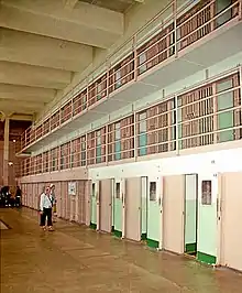 Предполагалось, что камеры будут содержаться в чистоте и порядке. Любые опасные предметы, обнаруженные в камерах или у заключённых, такие как деньги, наркотики, одурманивающие вещества или инструменты, которые могут нанести травму или помочь в попытке побега, считались контрабандой и за это заключённые получали дисциплинарное взыскание. Заключённые обязаны были бриться в камере три раза в неделю. Попытка подкупа, запугивания или нападения на сотрудников тюрьмы рассматривалась как очень серьёзное преступление[54]. Афро-американцы были изолированы от других заключённых в камерах из-за расового насилия[57].