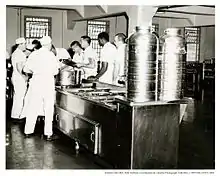 В конце каждой 20-минутной трапезы в столовой вилки, ложки и ножи раскладывались на столе и тщательно пересчитывались. В первые годы пребывания в тюрьме заключённым запрещалось разговаривать во время еды, но позже это было смягчено при условии, что заключённые общались тихо[37][42].