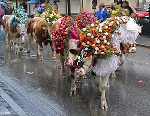 Осенью пастухи отгоняют скот обратно в их стойла в долине. В том случае, если летом не было особых происшествий на летних пастбищах, во многих районах коров искусно украшают и шеренги коров входят в деревни и города под музыку и танцы местных жителей.[1]