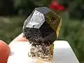 Образует хорошие кристаллы в форме ромбододекаэдров и тетрагонтриоктаэдров. Для ювелирной обработки используют кристаллы размером 4-6 мм, более крупные кристаллы редки[1].