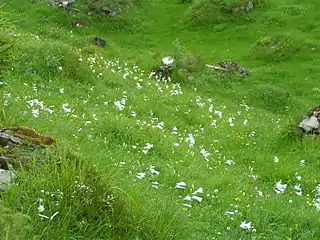 Подвижные щебнистые субстраты заселяют растения-пионеры, имеющие очень сильную, глубокую корневую систему. К ним относятся мак, резуха альпийская, родиола розовая. Растения альпийских лугов являются хорошими травами для корма животных, благодаря этому в летний период там пасут скот. Среди альпийской флоры также встречаются декоративные виды, к примеру, эдельвейс[1].