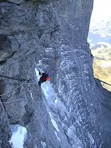 - Северная стена Эйгера. В течение десяти лет с 1928 по 1938 год альпинисты различных стран безуспешно пытались пройти эту труднейшую стену в Альпах[34]. После первопрохождения северной стены Эйгера в 1938 году к настоящему времени по этой стене проложено большое количество маршрутов, пройденных неоднократно. Об одной из попыток восхождения по северной стене Эйгера в 1936 году, закончившейся трагически, немецкими кинематографистами в 2008 году был снят художественный фильм «Северная стена» (нем. Nordwand), основанный на действительных событиях. В настоящее время по северной стене Эйгера проложено много трудных маршрутов[26].