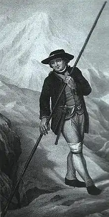 Возникновение альпинизма чаще всего связывают с покорением 8 августа 1786 врачом Мишелем-Габриэлем Паккардом и горным проводником Жаком Бальма высшей точки Альп — Монблана[9][10]. Памятник первовосходителям на Монблан находится в мировом центре альпинизма и горных лыж — Шамони.