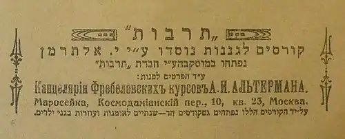 Из Москвы курсы переместились вместе с Альтерманом и Гальпериным в Одессу. С началом Гражданскй войны — в Киев. В Киеве он также открыл курсы воспитательниц для где сеть детских садов «Тарбута», финансировавшейся Моше Златопольским и семейством Персицев.