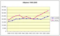Демографические изменения в этих двух муниципалитетах с 1900 года носят довольно дифференцированный характер: Екла, наиболее густонаселенный, наиболее остро пережил войну и миграционный кризис пятидесятых годов, а также восстановился раньше и более активно. Хумилья напротив, переживает умеренный рост на начальных и конечных этапах процесса.