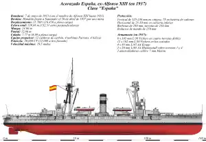 Построенный для обороны испанского побережья, линкор «Альфонсо XIII» стал одним из лучших кораблей испанского флота и считался даже национальной гордостью. К сожалению, ввиду несовершенства технологий строительства кораблей в Испании и долгого строительства, этот корабль не мог соперничать со своими современниками из других стран[3].