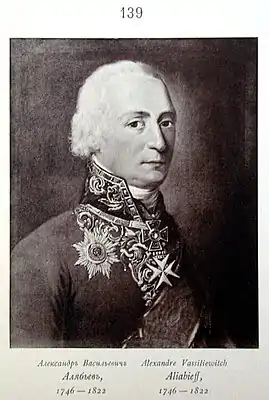 Алекса́ндр Васи́льевич Аля́бьев (1746—1822) — президент Берг-коллегии, губернатор, сенатор, главный директор Межевой канцелярии; действительный тайный советник.