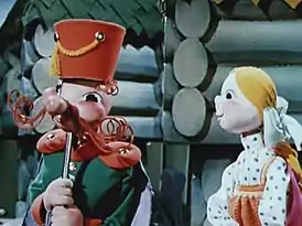 ![]() Кадр из мультфильма «Алёнушка и солдат» | |