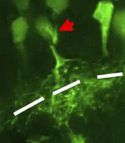 Стрелка и пунткирна линия — внешняя пограничная мембрана