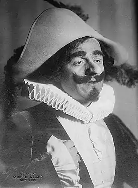 ![]() В роли Сирано де Бержерака в опере У. Дамроша (1913) | |