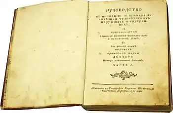 - Свой перевод руководства И. Шрейбера Нестор Максимович Максимович-Амбодик делал уже по переводу П. И. Погорецкого и с его прибавлением. Он увидел свет под названием «Руководство к познанию и врачеванию болезней человеческих наружных и внутренних, с прибавлением главных немощей женскаго пола и малолетных детей».