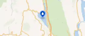 Озеро треугольной формы, с крутыми западными берегами, на севере мелководно и обильно поросши тростником[1].