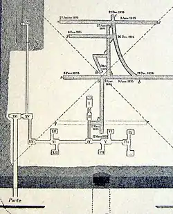 Шахта, ведущая направо, создавала впечатление, что она заканчивается тупиком, так как она не была запечатана и вела в пустое помещение. Однако, на самом деле это и был ход в погребальную камеру. Потолок этого помещения был двухскатным. Через него можно было попасть ещё в одну шахту, уходившую налево и опять же заканчивающуюся пустой камерой. Однако в потолке было сделано отверстие, из которого по шахте можно было попасть к глубокому колодцу. Строители очень надеялись, что непрошенный гость захочет по нему спуститься. Правда, внизу его опять же ждала пустота. За колодцем располагалось помещение, в дальнем конце которого находился ещё один колодец, где также ничего не было. Кажется, будто правая стена камеры сложена из плохо подогнанных друг к другу камней. Грабитель мог бы предположить, что за ней находится погребальная камера. Однако он только зря потратил бы силы, пытаясь проломить её.