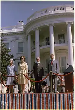 В 1977 году, конгресс принял закон о запрете американским компаниям участвовать в арабском эмбарго Израиля. В том же году в Женеве прошла международная мирная конференция по урегулированию арабо-израильского конфликта под патронажем США и СССР. Американская администрация была инициатором израильско-египетского саммита в Кэмп-Дэвиде, что в конечном итоге привело к заключению мирного договора между странами в 1979 году в Вашингтоне. Вместе с этим президент Джимми Картер обязался предоставить финансовую и военную помощь как Израилю, так и Египту. К тому же, США профинансировали перевод базы ВВС Израиля с Синая на территорию Израиля. В начале 1980 года картеровская администрация поддержала Резолюцию 465 СБ ООН, заявляющую о соблюдении принципов Женевской конвенции на оккупированных Израилем палестинских территориях, включая Восточный Иерусалим.