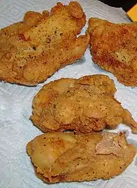 Типичными для кухни южных штатов являются жареная во фритюре курятина (fried chicken), шницели из говядины (country-fried steak), копчёная свинина (барбекю), оладьи и хлеб из кукурузной муки, крабы, крабовые супы (she-crab soup) и крабовые котлеты (Maryland crab cakes).