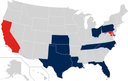 Юг США (12 университетов) Средний Запад (2 университета) Запад (2 университета) Северо-восток (1 университет) |