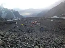 Уже утром 20 июня Бейтс, Крейг и Гилки вышли на разведку ледопада ледника Годвин-Остен между Базовым лагерем и Лагерем I (~ 5400 м) у подножия ребра Абруццкого (который был организован в тот же день) и вернулись вскоре после полудня — оптимальный путь по леднику был найден. По плану Хьюстона, для беспрепятственного дальнейшего обеспечения высотных лагерей сюда необходимо было доставить не менее тонны экспедиционных припасов. Поскольку собственных сил для реализации задуманной высотной логистики не хватало, вместе с Чарли и его командой в качестве высотных носильщиков остались шестеро хунза. Лагерь II предполагалось установить там же, где и в 1938 году, — на небольшой седловине в гребне, найденной Полом Петцольдтом на высоте около 5880 м (19300 футов)[28].