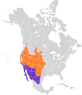 Распространён в западной части материка от Британской Колумбии и южной-восточной части Альберты к югу до центральной Мексики. Местообитания — засушливые открытые пространства, покрытые травой либо кустарником: прерии, кустарниковые заросли, вырубки, а также каменистые пустыни со скудной растительностью. Ночью его часто можно встретить вдоль обочин проезжих дорог, где он любит охотиться.