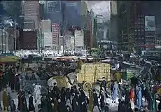 Роберт Генри (1865—1921) был художником реалистом, членом школы Ashcan School. Анри любил рисовать сцены из жизни людей. Он изображал лица, незнакомцев, быстро проходящих по улицам больших и малых городов. Работам Анри характерны энергичные и смелые мазки импасто, которые подчеркивают материальность красок. Анри оказал влияние на художников Глакенс (Glackens), Лукс, Шинн и Слоан.[2] В 1906 году он был избран членом Национальной академии дизайна. .