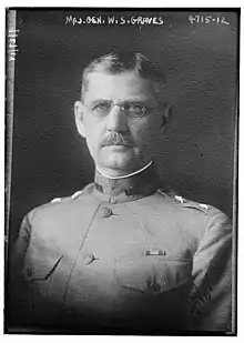 Американские силы на Дальнем Востоке составляли 7950 человек[1] под командованием генерал-майора Уильяма Грейвса. Это были 27-й и 31-й (4987 человек) полки Армии США, а также подразделения 310-го инженерно-сапёрного полка, военно-транспортные подразделения, медицинский батальон и полевой госпиталь[2], вместе с большим количеством добровольцев из 13-го и 62-го полков[1]. Американцы начали прибывать во Владивосток с 16 августа 1918 года. Грейвс объявил, что он будет проводить политику «невмешательства во внутренние дела России» и «полного нейтралитета», то есть одинакового отношения к Русской армии и красным партизанам. По межсоюзническому железнодорожному соглашению американцам были назначены для охраны участки Транссибирской магистрали от Владивостока до Уссурийска и в районе Верхнеудинска.[3]