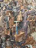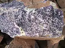 Месторождение полностью отработано, оно было известно аметистовыми щётками с ровной и иногда достаточно тёмной фиолетовой окраской, размером до 500 см² с кристаллами величиной от нескольких миллиметров до 2 сантиметров[4]. Окрас аметистовых щёток ровный, от бледно-сиреневого до тёмно-фиолетового[1]. Изредка в щётках наблюдаются вкрапления гетита[1]. В западной части памятника расположен флюоритовый шток, где в песчаник вкраплены прожилки флюорита мощностью до 15 сантиметров, чередующегося полосами густо-фиолетового и белого цвета[4].
