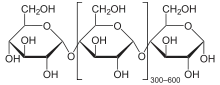 Амилоза (от др.-греч. ἄμυλον — «крахмал») — один из основных полисахаридов, составляющих крахмал. Образована линейными или слаборазветвлёнными цепочками остатков альфа-глюкозы, соединённых гликозидными связями между 1-м и 4-м углеродными атомами: α-(1→4).