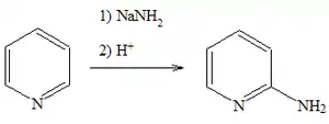 Для аминирования гетероциклических соединений активно применяется реакция Чичибабина, для проведения которой проводят взаимодействие с амидами щелочных металлов. Например, при взаимодействии пиридина с амидом натрия образуется 2-аминопиридин[1]: