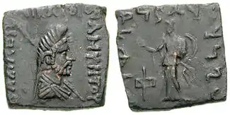- Abodh K. Narain: The Indo-Greeks. Clarendon Press, Oxford 1957, S. 1957, S. 102, 153—157.