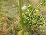 Двулетнее, в культуре однолетнее сильно ветвистое, голое травянистое растение. Корни беловатые, стержневые, деревянистые, слабо ветвистые. Стебель прямой, округлый, бороздчатый, высотой до 1 м.