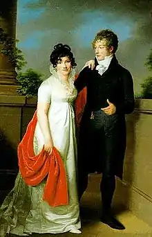 Шали с яркими бордюром и кистями или бахромой были необходимым аксессуаром и стоили невероятных денег. Их производство во Франции, вместо импортных кашмировых, началось благодаря покровительству императрицы Жозефины около 1805 года. Кроме своей эстетичности, они служили для защиты от холода. Возник даже особенный танец с шалью.