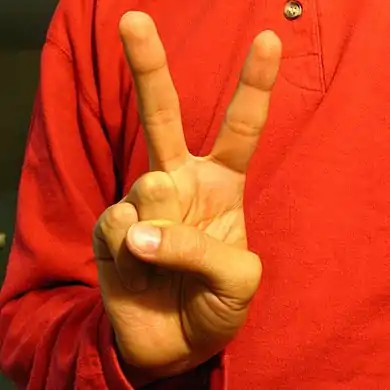 Стоуки первым провёл аналогию между этими компонентами и фонемами звучащих языков[67][nb 5]. Кроме того, имеются предположения об аналогичности этих особенностей месту и манере артикуляции[67]. К примеру, жесты для цифр 2 и 3 отличаются отгибанием большого пальца[63]. В амслене имеются аллофония и фонотактические ограничения[68], а насчёт наличия в нём аналога слогов идёт научная дискуссия[69].
