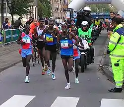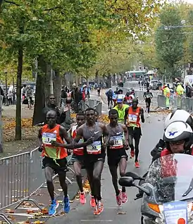 Лидирующая группа марафонцев на отметке 35 км в 2008 году