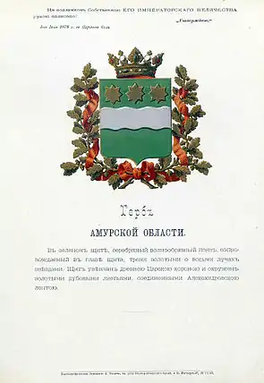 Аму́рская о́бласть Росси́йской импе́рии с центром в Благовещенске была образована 20 декабря (8 декабря по старому стилю) 1858 года Именным Указом № 33862[2]. Данным Указом по представлению генерал-губернатора Восточной Сибири и Сибирского комитета Амурская область была составлена из земель, «находящихся на левом берегу реки Амур, начиная от соединения реки Шилки и Аргуни или от границ Забайкальской и Якутской областей, по всему течению Амура, до устья реки Уссури и до новой границы Приморской области» (п.3)[3].