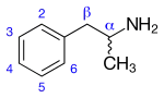 Амфетамины представляют собой подгруппу производных фенилэтиламина. Базовое соединение класса — собственно амфетамин или α-метилфенилэтиламин. Благодаря замещению атомов водорода может быть получено большое количество соединений. Довольно типичными являются метилирование (реже — этилирование) аминогруппы и замещения по фенильной группе[9][10][11]: