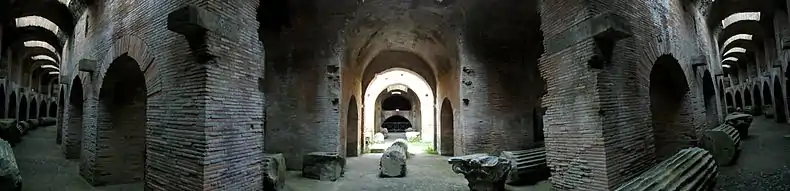 Подвальные помещения уходят на глубину до 7 метров. Их интерьер в основном не повреждён, можно увидеть детали механизмов, которые использовались для поднятия клеток со зверями на арену и для других сценографических нужд.