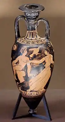 Амфориск с изображением юноши и женщины. Ок. 425—400 гг. до н. э. Лувр