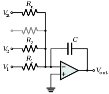 Интегросумматор представляет собой обычный интегратор с несколькими входами. Напряжение на его выходе: