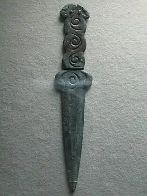 ![]() Бронзовая секира. Ананьинская культура. VII—V вв. до н. э. Экспозиция НМРТ | ||||